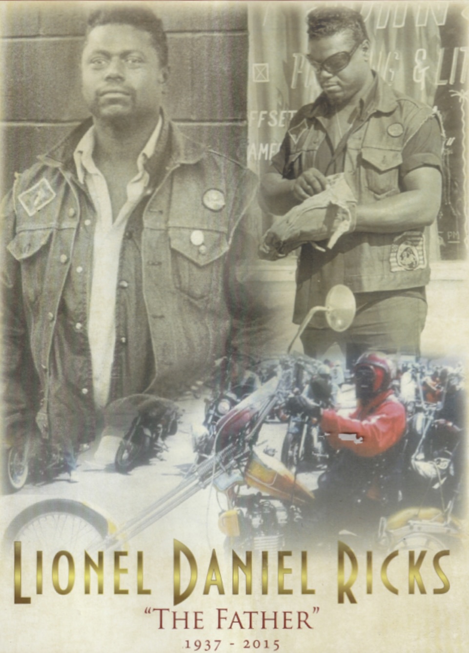 Lionel Daniel Ricks was born July 29, 1937 in Chicago, Illnois. He was the only child born to the union of Clyde Lydie Ricks and Thelma Oretta Lomax Ricks. At the age of 9, his parents sent him to California to live with his Aunt Mary until they later arrived and opened their home to help raise their niece Rosie Belle and nephews Marvin and Richard. As a little boy he attended church regularly with his parents and later accepted Christ as his Lord and Savior. Lionel enjoyed church, and as a teen he became active and joined the choir where he sang regularly. He received his education in the Los Angeles Unified School District and later graduated from Thomas Jefferson High School. Lionel was physically active in high school, he was a gymnast, and an excellent swimmer. He stayed physically fit, and said "No" to alcohol, cigarettes and drugs, but he insisted on having hamburgers and soda pops. Lionel was a "Jack of All Trades" and a man of many talents. He created weaponry, he was an interior decorator and clothing designer, he actually knew how to sew. Most of all, his pride and joy was riding his beautiful motorcycle. Lionel used his time constructively and always held a job. His first job was with his father in construction. He was a talented builder and landscaper. Lionel met his wife Beverly McLaurin in high school. They were married in 1955 and to this union were born three daughters. Lionel was a very caring and loving father. The needs of his children came first and he worked hard to provide for them. Being a "Tack of All Trades" and being so "Creative", in 1959 he came to envision his idea of starting a motorcycle club called the "Chosen Few. When the club began it had 6 members. Over the years the club has grown. It has chapters across the United States, Hawaii, and the Philippines. The club became the first multiracial club of its kind.